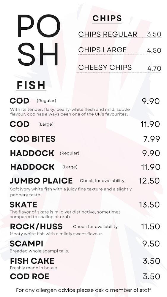 The Posh Plaice is situated in the heart of Epsom, a bustling area known for its vibrant food culture. Located conveniently on Tattenham Crescent, it’s easily accessible whether one is driving through or taking a stroll. The surrounding neighborhood offers ample free street parking and a welcoming atmosphere, making it a favored spot for locals and visitors alike. The shop has transitioned from a traditional sit-down restaurant to a contemporary takeaway, offering both traditional fish and chips and a variety of savory delights. Accessibility is a priority, featuring wheelchair-accessible entrances. With a friendly staff that prides itself on providing top-notch customer service, every visit feels warm and inviting. The community cherishes its presence, especially on Fridays when the place fills with eager diners ready for a classic fish and chips fix. The Posh Plaice is not just a takeaway; it’s a pillar of the local dining experience.